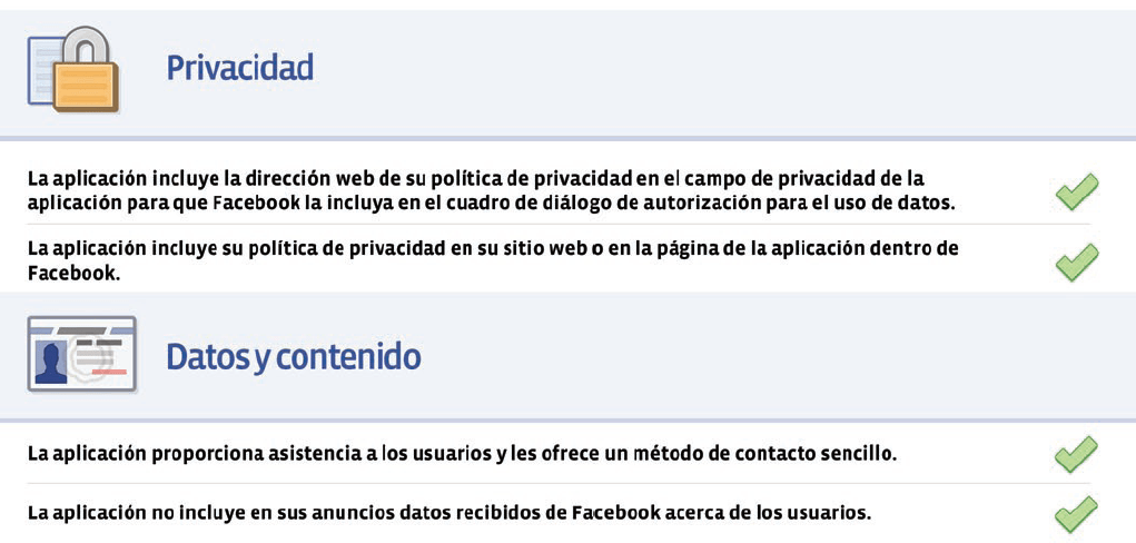 Un recursos práctico interesante para los desarrolladores el siguiente checklist proporcionado por el mismo Facebook, que nos ayudará a comprobar que le aplicación que queremos lanzar se ajuste a la normativa de dicha plataforma: